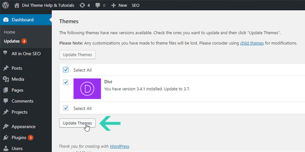 Si vous rencontrez des difficultés pour installer le thème Divi, la première chose à vérifier est de savoir si la dernière version de WordPress est installée ou non. Le thème Divi nécessite WordPress 4.0 ou supérieur. Si vous utilisez une ancienne version de WordPress, vous devrez mettre à jour WordPress avant de pouvoir installer le thème Divi.