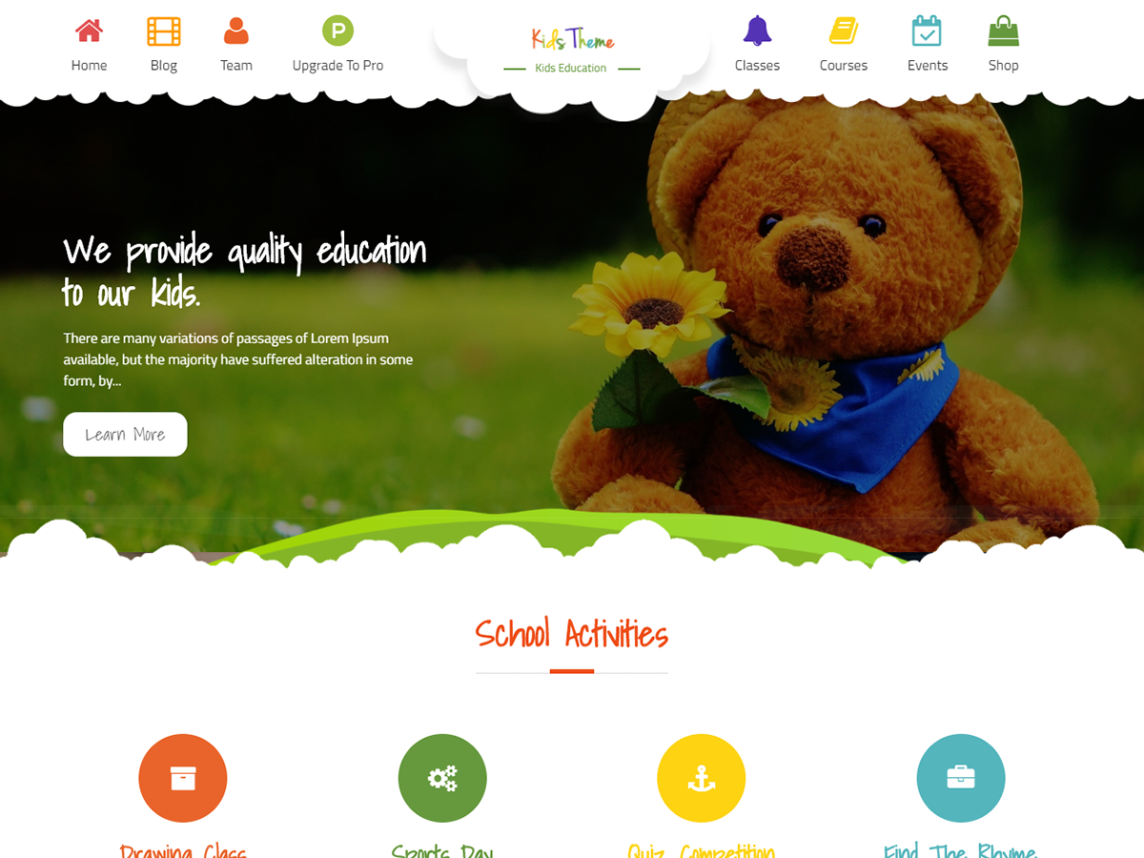 يدعم موضوع Kids Education جميع المكونات الإضافية الرئيسية ، ولديه خيارات مخصصة تتيح لك تصميم موقع الويب الخاص بك ببساطة وسلاسة. يحتوي هذا المظهر على خيارات تحميل شعار مخصصة وتوافق عبر المستعرضات. إنه سريع الاستجابة وجاهز لجعل موقع الويب الخاص بك يبدو حادًا للغاية على أي نوع من أنواع العرض.