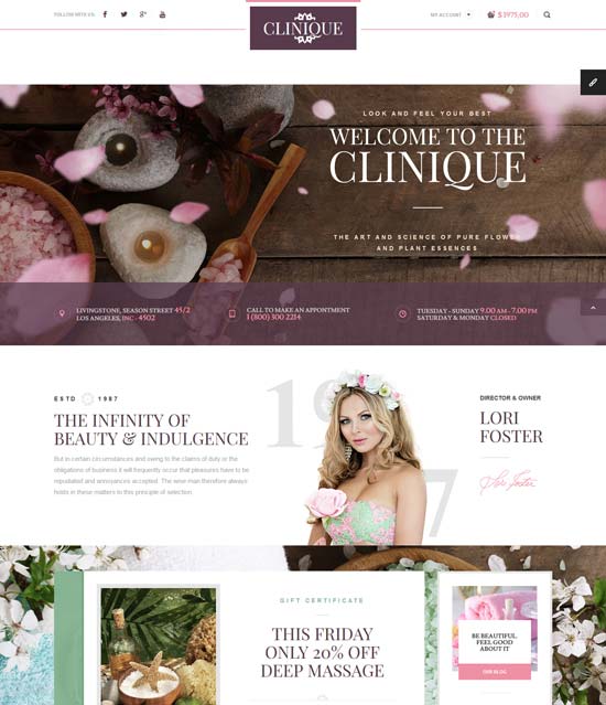 Clinique هو نموذج HTML للرفاهية الرائعة ، مصمم لمساعدتك في إنشاء موقع ويب مرتبط بصالون السبا أو مركز التجميل أو المركز الصحي أو أي شيء من هذا القبيل. يحتوي على العديد من الخيارات للمعرض والمدونة ، وستساعد الرؤوس والتذييلات بالتأكيد في إضافة لمسة شخصية إلى القالب. يحتوي أيضًا على صفحة المواعيد ، لمساعدتك في متابعة جدولك ، وصفحة الآلة الحاسبة ، حتى يتمكن عملاؤك من تقدير سعر الإجراءات المخططة بسهولة.