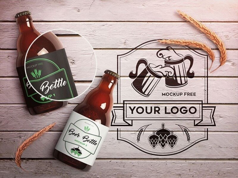 نموذج واقعي للصور يتكون من زجاجتي بيرة. يحتوي ملف PSD ذي الطبقات على خمسة كائنات ذكية وثمانية تأثيرات اختيارية للصور.