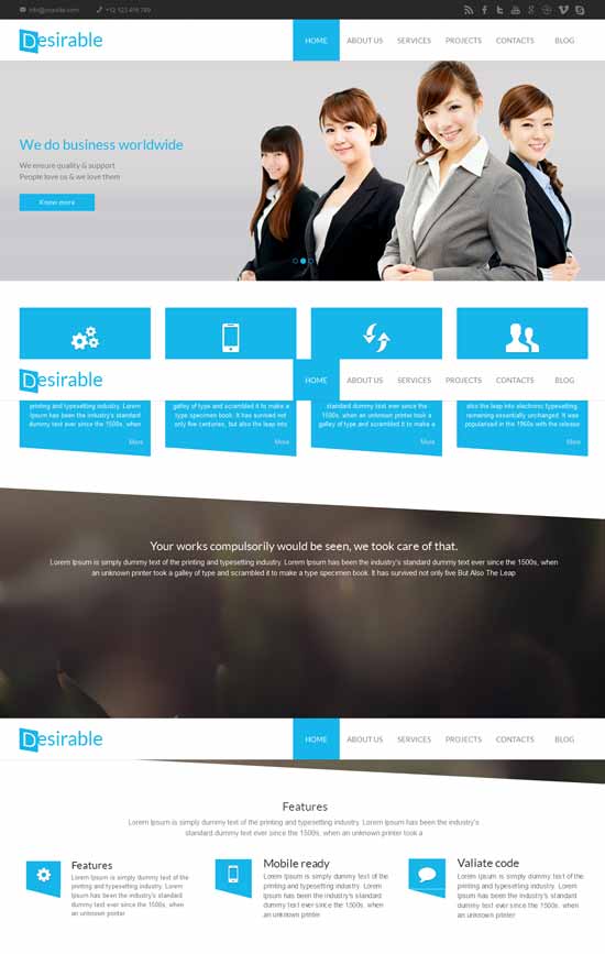 قالب HTML5 للأعمال مرغوب فيه مصمم لأي نوع من الأعمال مثل الوكالة الإبداعية أو المستقل أو الأعمال العامة. تم تصميم النموذج بشكل فريد وجميل بألوان أنيقة ، ويتميز بشبكة متجاوبة وتحسين شبكية العين وتصميم حديث وغير ذلك الكثير.