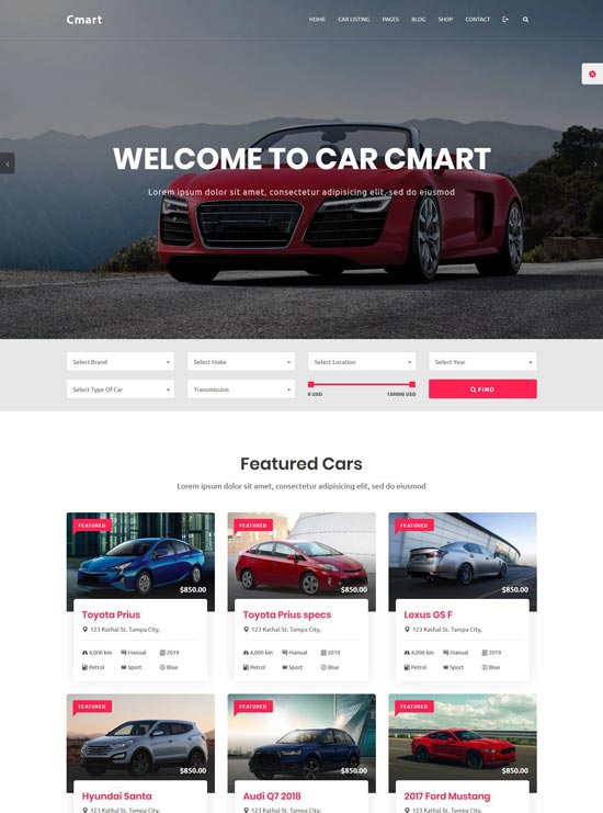 نموذج HTML لتاجر السيارات من Cmart - 6 صفحات رئيسية