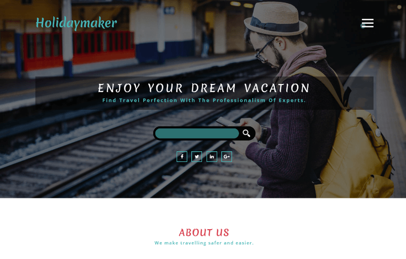 صانع العطلات هو قالب متعدد الأغراض موضوعه السفر وهو الخيار الأفضل لجميع مواقع الويب الخاصة بك لتعزيز تواجدك عبر الإنترنت وتوسيع نطاق أعمالك عبر الإنترنت باستخدام هذا القالب الذكي المصمم بأناقة. أحد أفضل قوالب مواقع HTML المجانية متعددة الأغراض. يعد هذا القالب المصمم بذكاء أيضًا خيارًا مثاليًا لجميع مواقع الويب الخاصة بك مثل المنتجعات وجولات الحزم والأحداث وقضاء شهر العسل والرحلات البحرية ووكالات السفر ومنظمي الرحلات ومحلات المغامرات ودليل السفر ومواقع تأجير القوارب وغير ذلك الكثير. هذا القالب عبارة عن قالب متعدد المستعرضات متجاوب بنسبة 100٪ ، متوافق مع جميع الأجهزة ، ومعروض على جميع أحجام الشاشات.