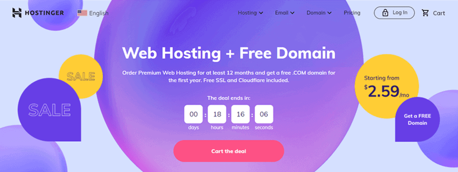 Hostinger عروض الجمعة البيضاء 2022: SALE! 70٪ خصم + دومين مجاني