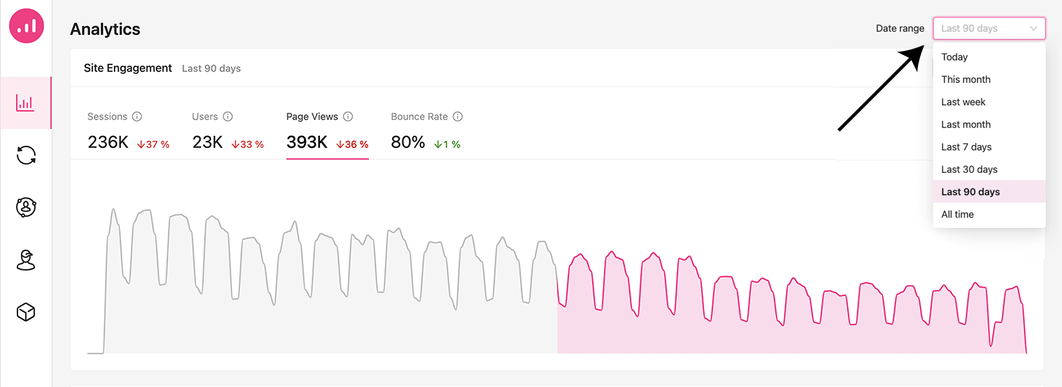 - كيفية تغيير النطاق الزمني في تحليلات Growmatik