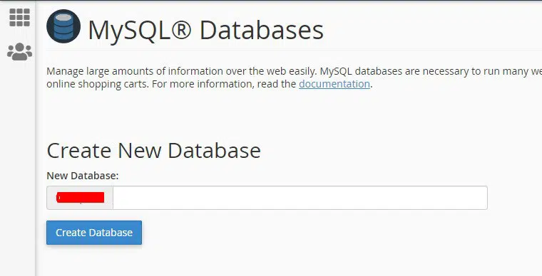 الآن ، تحتاج إلى التوجه إلى قاعدة بيانات MySQL وإنشاء قاعدة بيانات جديدة. ستجد الخيار في cPanel نفسها.