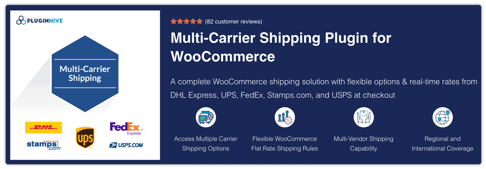 تم تصميم البرنامج الإضافي Multi-Carrier Shipping لـ WooCommerce للمتاجر التي تعتمد على شركات نقل متعددة وترغب في منح العملاء المزيد من خيارات الشحن. فهو يسحب الأسعار المباشرة من شركات النقل مثل UPS وFedEx وDHL وUSPS، مما يضمن أن المشترين يرون دائمًا تكاليف شحن دقيقة وتنافسية. من خلال التعامل مع جميع مقارنات الأسعار داخل WooCommerce، فإنه يوفر على أصحاب المتاجر تعقيد التعامل مع أدوات متعددة.