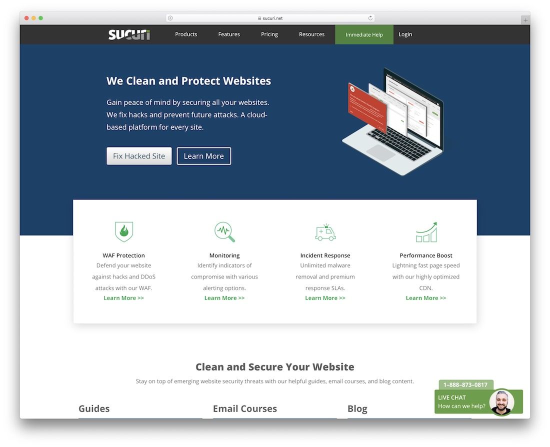 Eine tolle Alternative ist Sucuri. Es hilft Ihnen, Probleme zu beheben und Ihr Projekt vor bevorstehenden Angriffen zu schützen. Überwachung, Schutz, Leistungsverbesserungen, SSL-Unterstützung, SIEM-Integration und andere Extras sind Teil von Sucuri. Natürlich bieten nicht alle Pläne alles, aber auch die Basislösung ist ein guter Ausgangspunkt. Mit über siebenhundert vollständigen Websites, die täglich bereinigt werden, macht Sucuri etwas außergewöhnlich gut. Nie wieder auf Probleme stoßen.