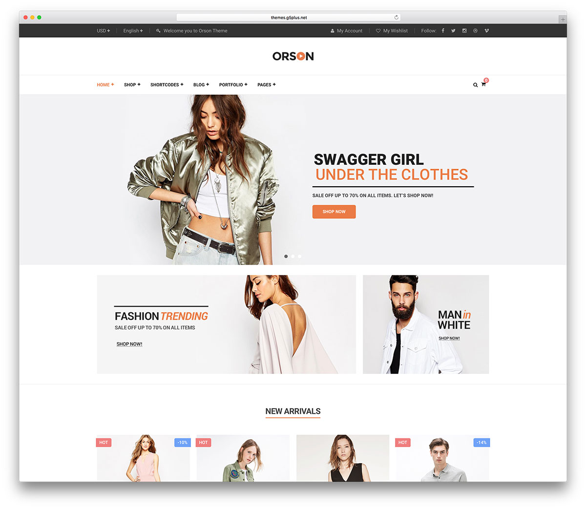 Orson ist ein cleveres, praktisches und reaktionsschnelles Website-Theme für WordPress-Onlineshops. Mit dem WPBakery-Plugin können Sie Ihre Seiten nach Belieben von Hand erstellen.