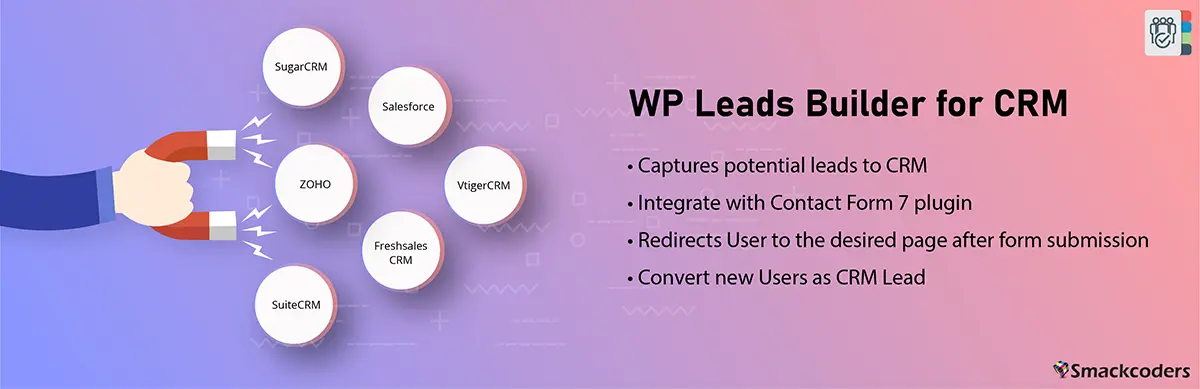 Dieses hoch bewertete WordPress CRM-Plugin verbindet Ihr Contact Form 7-Plugin mit der Zoho CRM-Suite. Es integriert Ihre Kontaktformular-Übermittlungen mit dem CRM. Einfach ausgedrückt, verwenden Sie Contact Form 7, um ein Kontaktformular zu entwickeln.