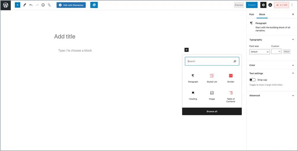 Wann immer Sie einen Beitrag/eine Seite mit Gutenberg erstellen, sind Sie auf das Layout Ihres Themas beschränkt.