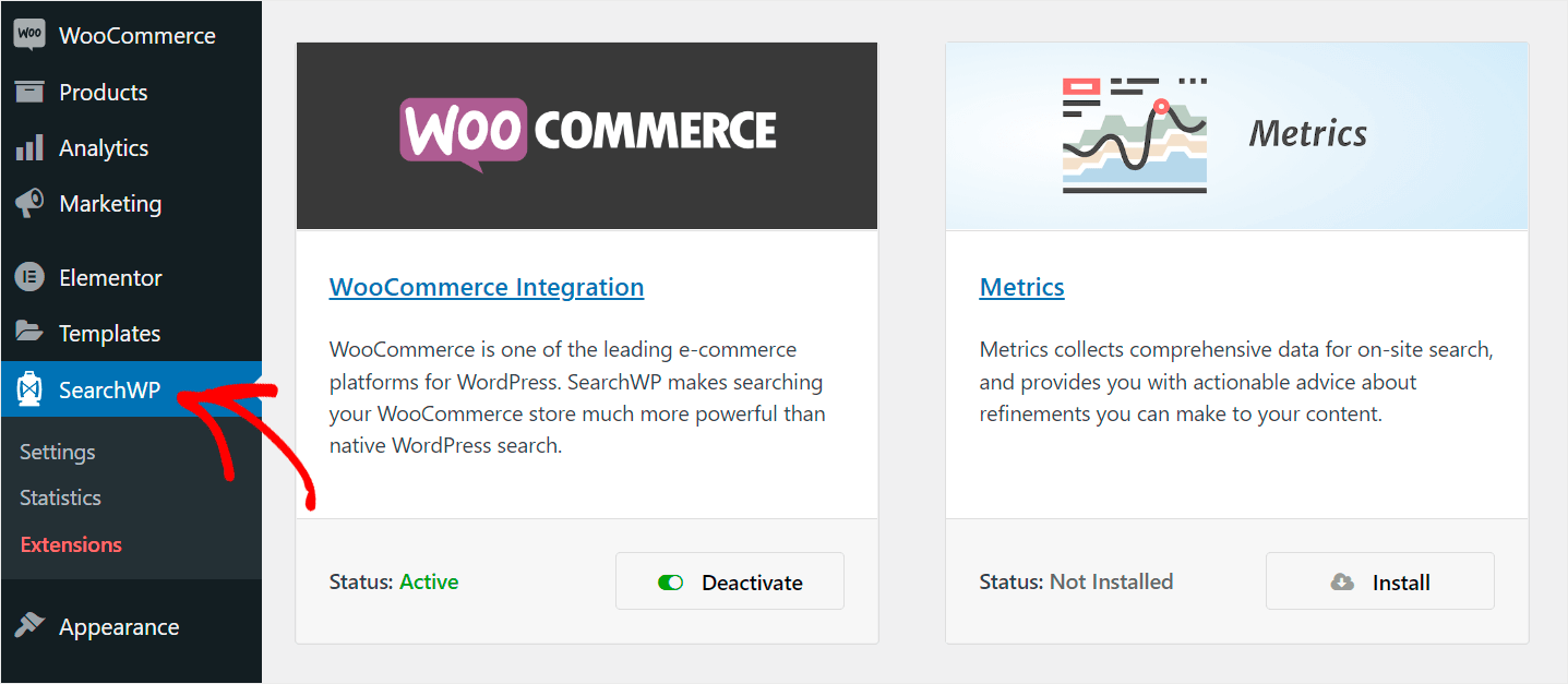 Nach der Installation und Aktivierung von SearchWP auf Ihrer Website besteht der nächste Schritt darin, die WooCommerce-Integrationserweiterung zu installieren.