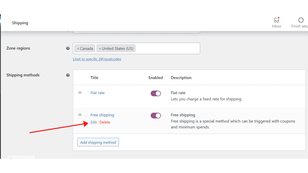 - Sie müssen zu dieser Versandartenliste zurückkehren und für jede Versandart auf Bearbeiten klicken.