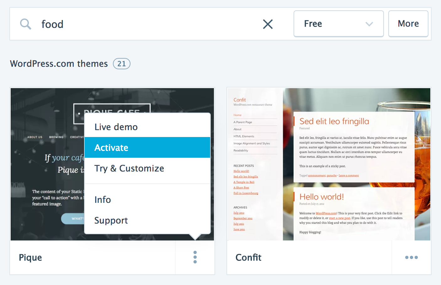 Hier liegt ein Großteil der Kontroverse für WordPress.org-Designautoren, die für die Verteilung auf das offizielle Verzeichnis angewiesen sind. Der Wettbewerb mit ebenso kostenlosen Themen, die auf WordPress.com gehostet werden, mit einer viel besseren Sortier-Benutzeroberfläche und Vorschaufunktionalität ist eine neue Herausforderung, die sie annehmen müssen.