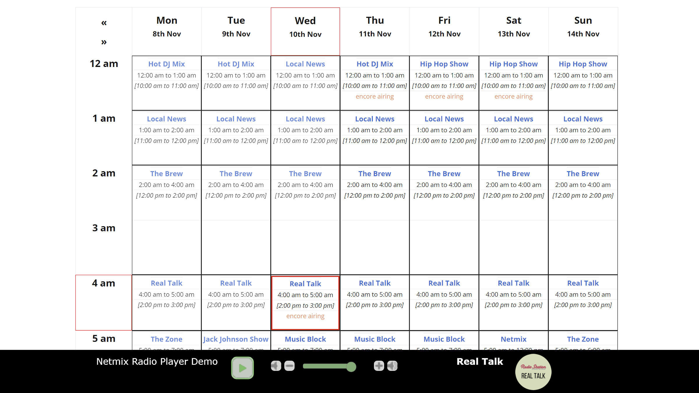 Das kommerzielle Plugin wurde für Live-Audio-Sender mit einem fortlaufenden Showplan entwickelt. Das Publikum reicht von Radiosendern über Live-Streamer bis hin zu Clubhouse-Moderatoren. Es ermöglicht den Zuhörern, generierte Show- und Teamseiten, Wiedergabelisten und zugehörige Informationen ununterbrochen während eines Live-Streams zu durchsuchen. Ziel ist es, ein effizienteres Planungs- und Streaming-System zu schaffen, das den Sendern Zeit und Ressourcen spart.