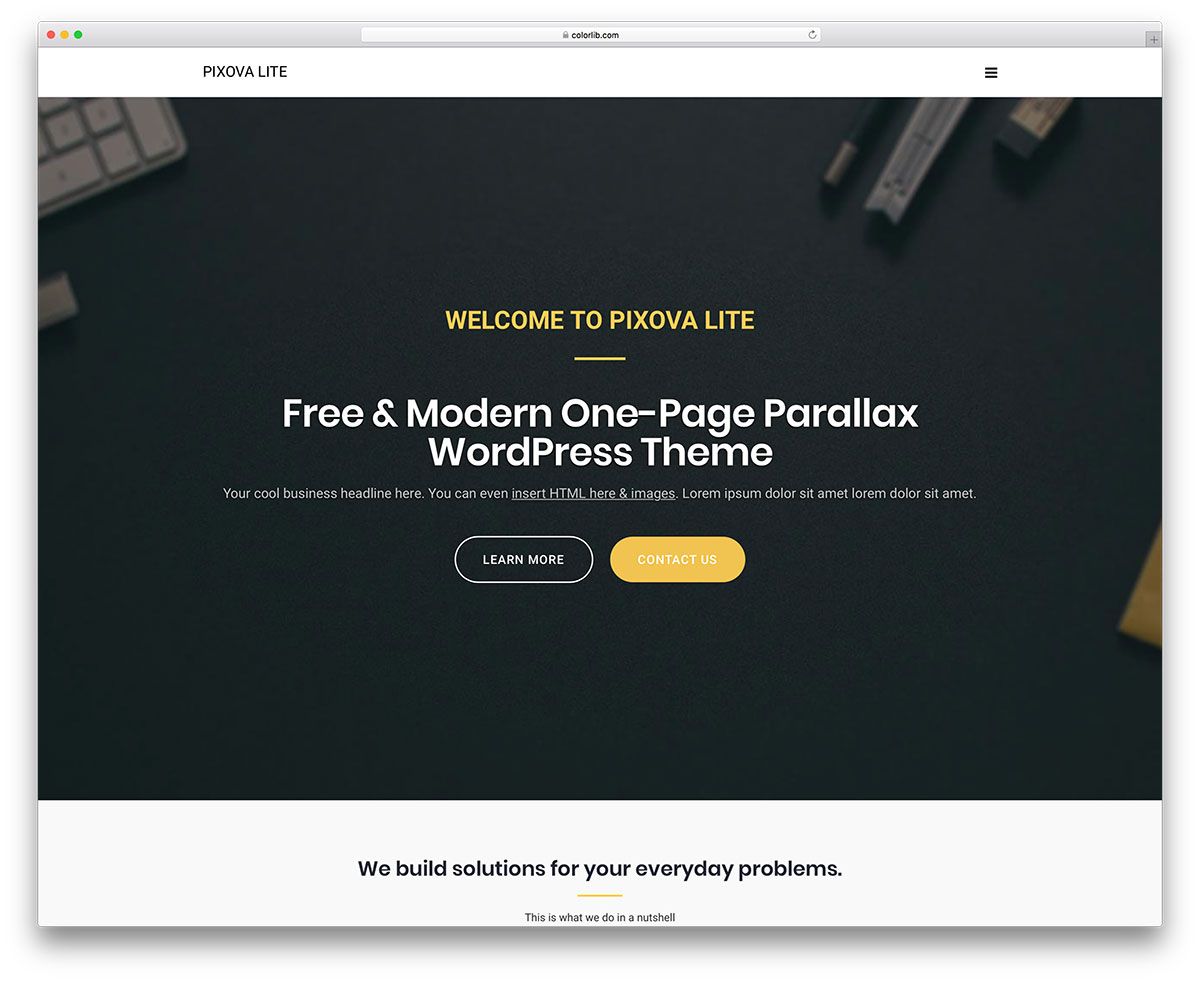 Pixova Lite viene con un poderoso personalizador en vivo y animaciones. Está hecho como un tema de desplazamiento de una página con un efecto Parallax. También encontrará páginas de blog, páginas de contacto y soporte personalizado completamente disponibles. Todas las transacciones comerciales posibles se realizan con el complemento WooCommerce en muy poco tiempo. Establezca tiendas increíbles con carritos, vista previa de productos y más. ¡Pixova Lite es un tema hecho para tener todas las herramientas para principiantes y más! ¡Obtenga soporte personalizado también! Pasa un buen rato construyendo un sitio web con las posibilidades que te brinda este tema vanguardista y actualizado. ¡Prueba Pixova Lite!