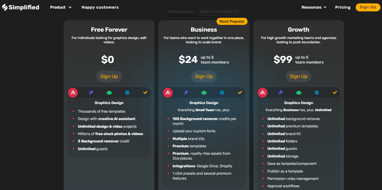 Simplified es un conjunto de herramientas destinadas a facilitar la vida de los especialistas en marketing. Contiene una herramienta de diseño gráfico, un editor de video, un escritor de IA y un planificador de contenido.
