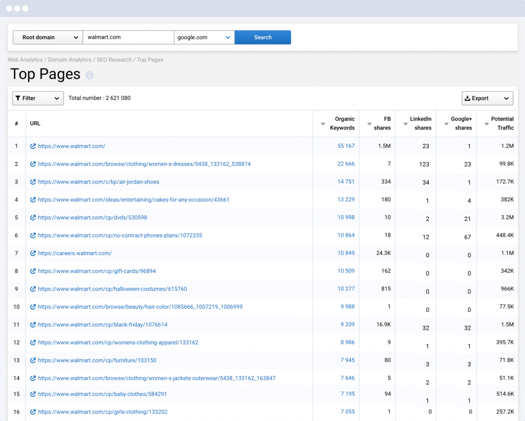 Es muy bueno para realizar investigaciones sobre tus competidores para analizar su estrategia SEO.