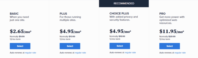 Puede seleccionar cualquier plan que se adapte a los requisitos de su sitio web. En cualquier caso, recomiendo encarecidamente el Plan Básico ya que tiene funciones y beneficios ilimitados.