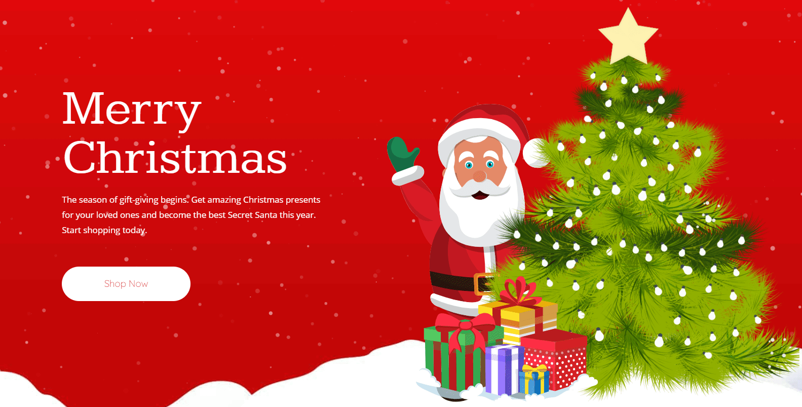 Para que los visitantes de su sitio se entusiasmen con las compras navideñas, puede crear un espíritu festivo en su sitio web utilizando lindas ilustraciones navideñas , efectos de nevadas animadas y mucho más. No hay necesidad de perder el tiempo dando un cambio de imagen completo a todo su sitio web; puede simplemente crear una sola página de destino para mostrar sus ofertas navideñas y redirigir a sus visitantes allí.
