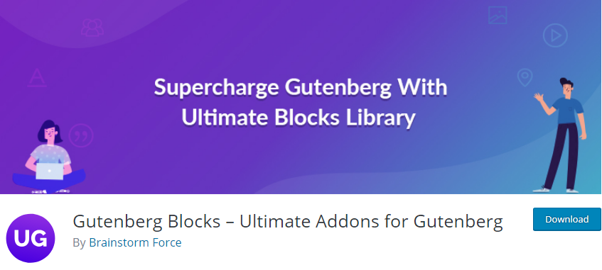 Moviéndose más abajo en la lista, Ultimate Blocks es un complemento que consiste en una colección de diferentes bloques de Gutenberg, destinados a especialistas en marketing y blogueros. El objetivo principal de este complemento es simplificar el proceso de creación de contenido atractivo y animado.