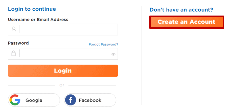 Paso 8: ingrese su correo electrónico , establezca una contraseña segura, acepte los términos y presione el botón que dice Crear una cuenta (este paso no será una carga si elige registrarse con una cuenta de Google o Facebook ).