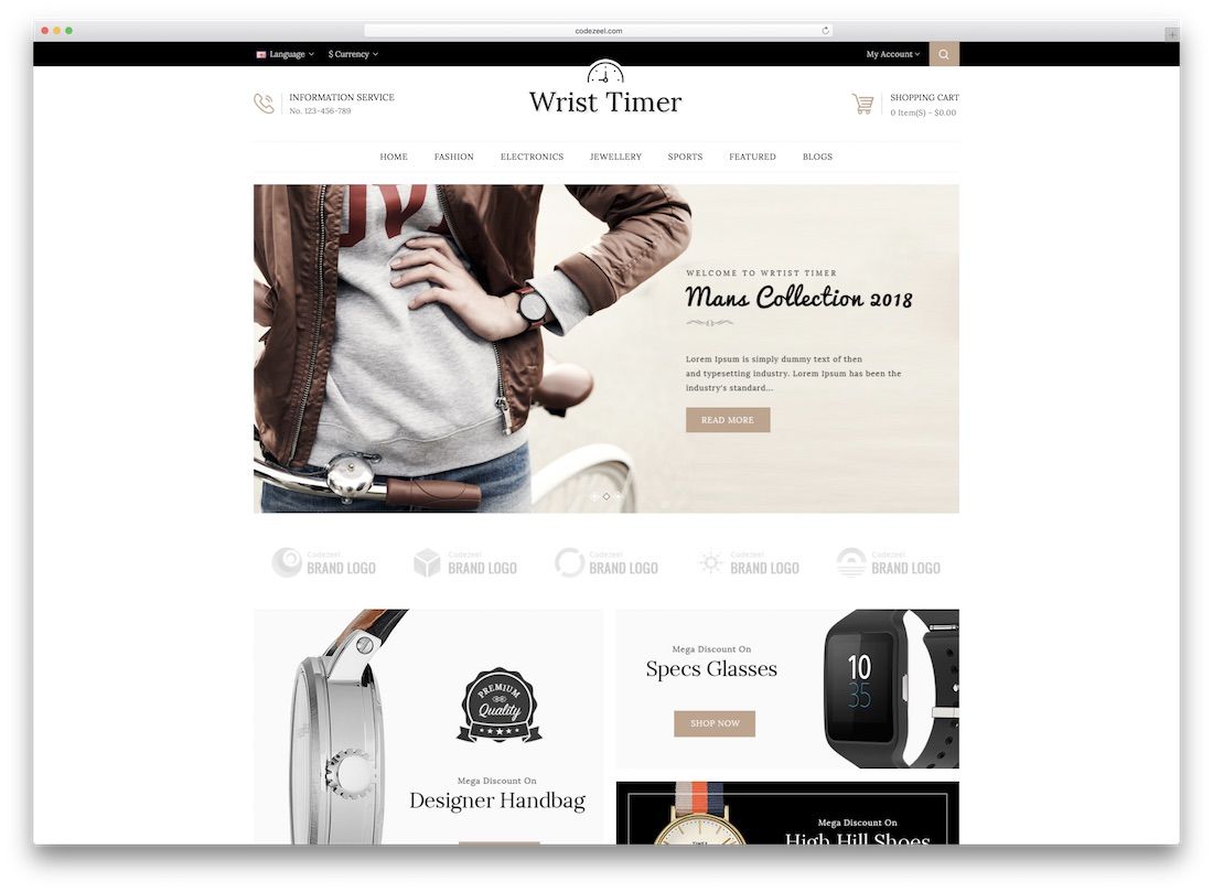 L'objectif principal de Wrist Timer est les montres, mais son utilisation pour la mode, les bijoux et même l'électronique est également possible. C'est un thème OpenCart solide qui prend en charge toutes vos demandes et demandes. La minuterie au poignet convient le mieux aux petites et moyennes entreprises, tandis qu'aux utilisateurs, elle convient à tous. Les créateurs de sites Web débutants et avancés qui se spécialisent dans les boutiques en ligne sont invités à relever un défi avec Wrist Timer. Mais aucun défi n'est trop difficile et complexe pour le thème Wrist Timer.