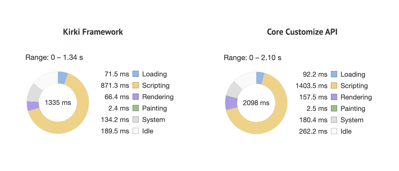 Dans ce cas, la réalité est que le contraire est vrai. La plupart du temps, les panneaux de contrôle construits avec Kirki seront en fait plus rapides que les mêmes panneaux construits avec Core Controls.
