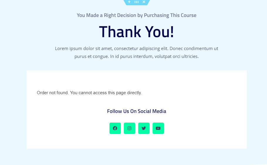Ouvrez un nouvel onglet et commandez un produit en mode test, lorsque vous serez redirigé vers la page de remerciement que vous avez conçue maintenant. Lorsque vous êtes sur la « page de remerciement », cliquez sur le lien « modifier avec élémentaire » dans la barre supérieure de WordPress. Et maintenant, vous pouvez modifier votre page de remerciement avec tous les détails affichés.