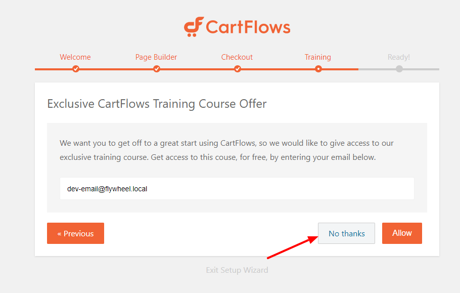 Les CartFlows fournissent un moyen interactif de configurer le plugin lors de la 1ère activation. Le plugin vous guidera à travers un processus en 5 étapes qui rend la configuration complètement facile pour les non-techniciens