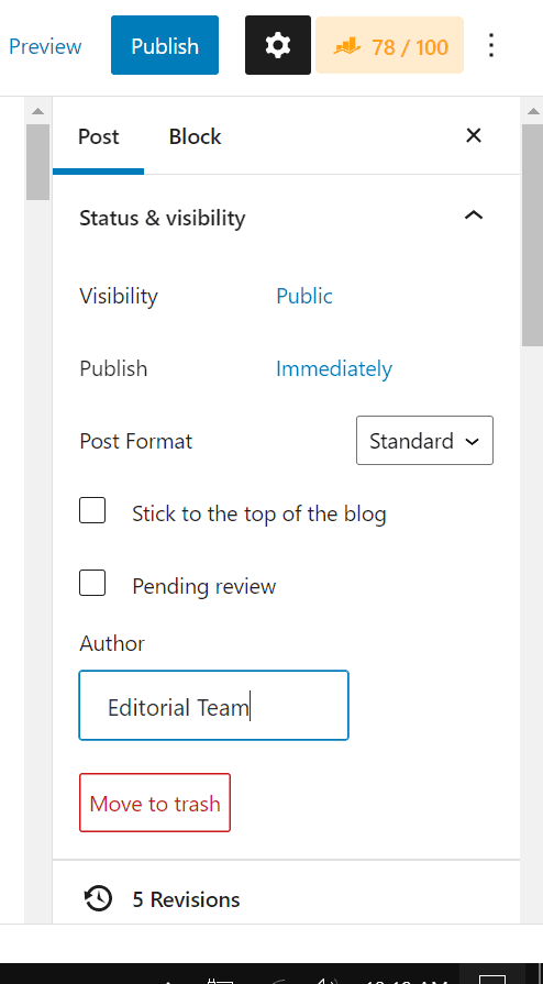 - Ici, vous verrez une option intitulée Auteur sous Statut et visibilité .