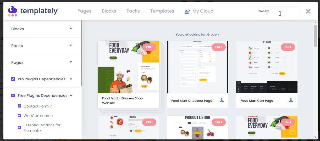 Faisons quelques choses avant d'utiliser ce pack de modèles Elementor 'Food Mart' de Templately . Voyons les plugins nécessaires que vous devez avoir pour utiliser ce pack de modèles de site Web d'épicerie :