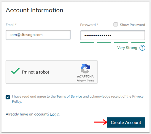 Après cela, vous devez créer un compte Nexcess dans la section Informations sur le compte . Alors, remplissez vos coordonnées et cliquez tout de suite sur le bouton Créer un compte .