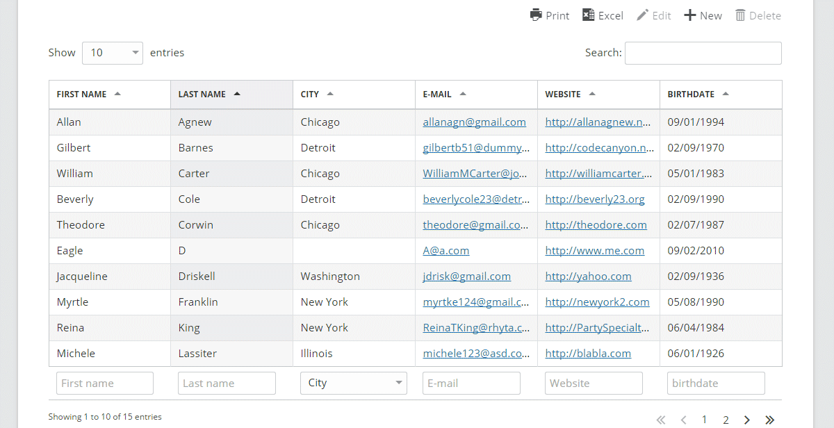 - Contient plusieurs modules complémentaires pour améliorer encore ses fonctionnalités telles que la création de tableaux réactifs, les filtres de colonnes, le bouton Enregistrer dans un fichier PDF et bien plus encore.