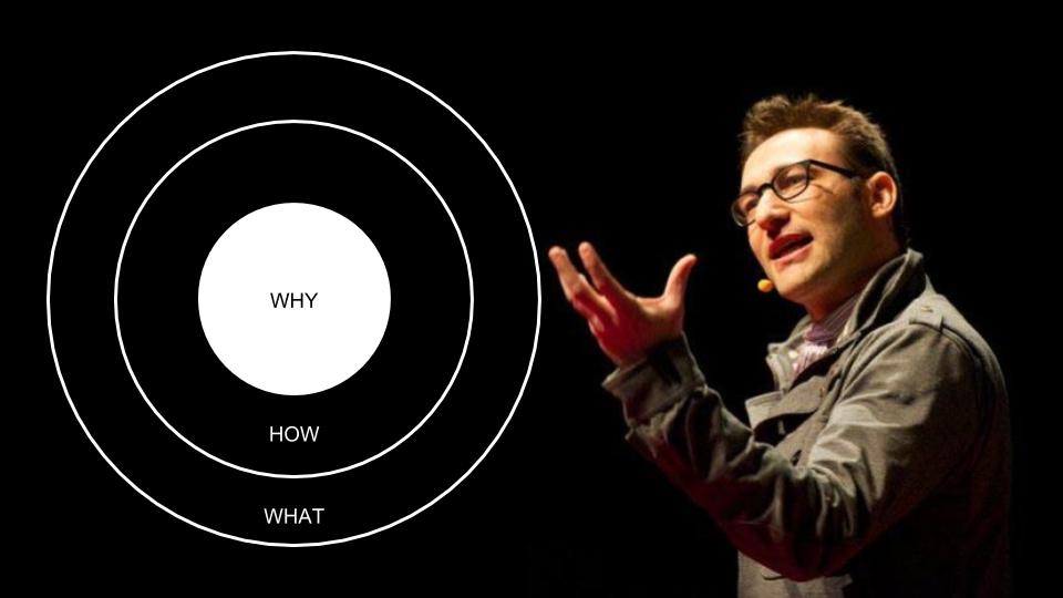 Simon Sinek est connu pour sa conférence Ted où il explique que la plupart des gens expliquent un nouveau produit ou service en parlant de « ce » que c'est et de « comment » il fonctionne, mais ils expliquent rarement le « pourquoi » derrière. Le « pourquoi » résonne le plus chez les gens. Ils veulent comprendre la raison et les croyances derrière cela.