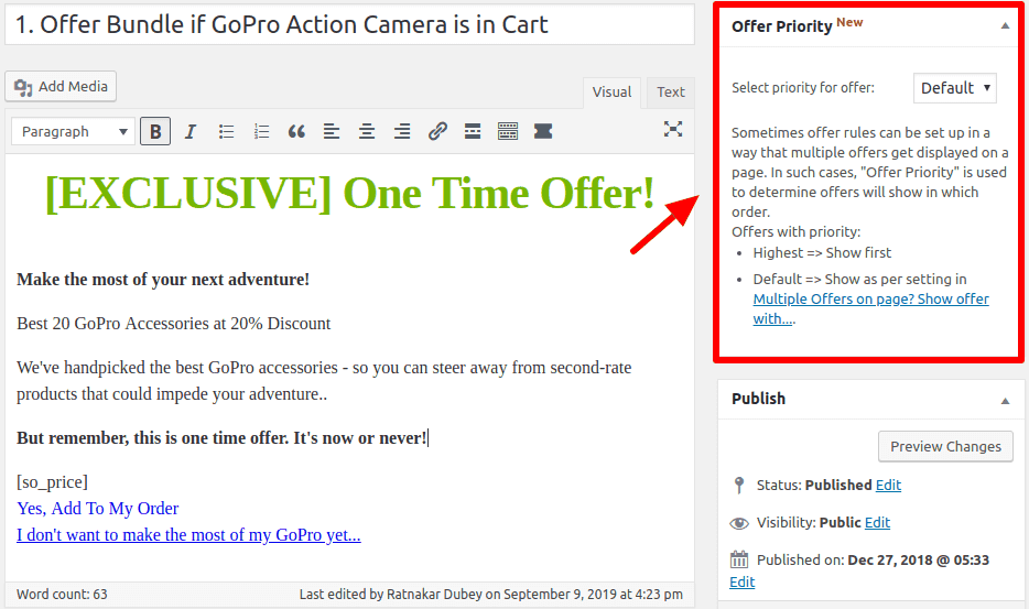 - Sélectionnez la priorité de l'offre dans le menu déroulant, comme indiqué dans l'image ci-dessus.