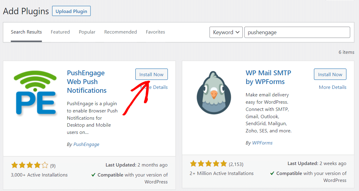 Tout d'abord, nous allons installer le plugin PushEngage. Vous le trouverez dans le référentiel de plugins WordPress.