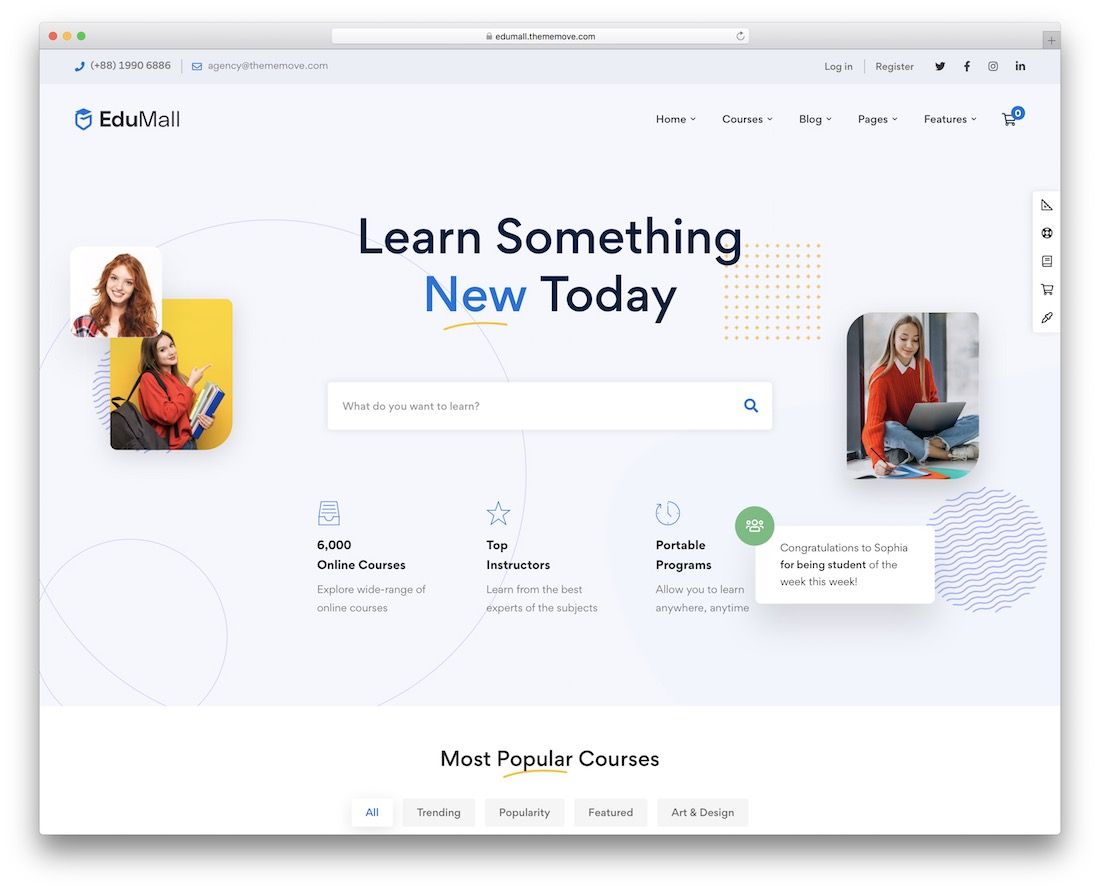 Platform pendidikan online kecil atau besar, semuanya dimungkinkan dengan penggunaan EduMall. Kanvas situs ini juga dilengkapi dengan pembaruan rutin yang menyertakan fitur baru, sehingga Anda tidak akan pernah kehabisan kemungkinan. Yang terpenting, semua orang dapat bekerja dengan EduMall, dan juga akan sangat ramah kepada semua siswa Anda.