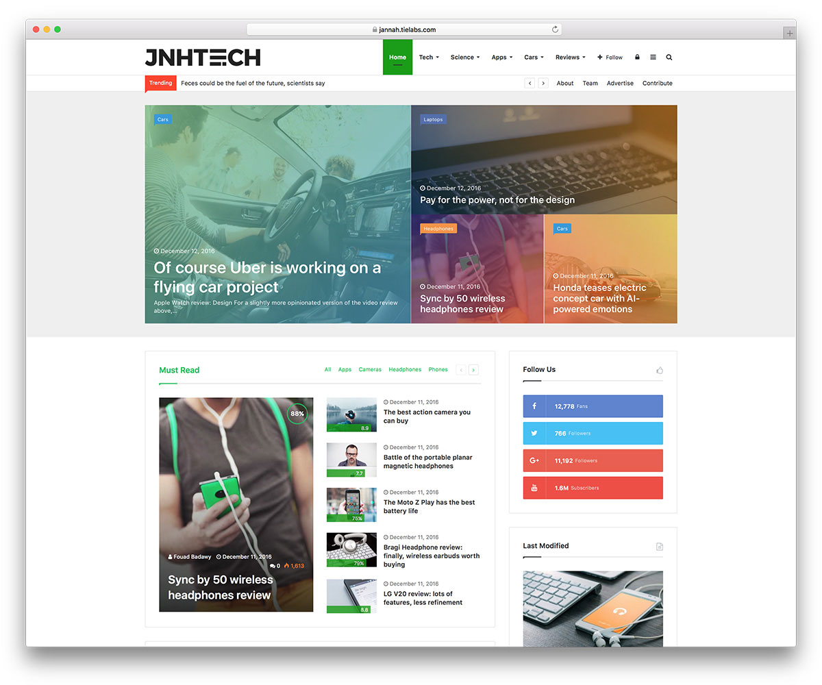 Jannah adalah tema WordPress yang kuat yang berspesialisasi dalam berita. Ini memiliki semua kecepatan dan fleksibilitas yang dibutuhkan situs web berita. Jannah menyertakan banyak demo siap pakai yang dapat Anda impor dengan satu klik. Salah satunya adalah Berita Teknologi. Tema ini menawarkan kemungkinan untuk menyenangkan ceruk yang sangat spesifik ini. Konten Anda dioptimalkan untuk seluler, dimuat dengan cepat di mana saja dengan Accelerate Mobile Pages (AMP). Ini memiliki fitur dunia nyata seperti 'pilih & bagikan', dukungan GIF atau pemberitahuan berbasis web.