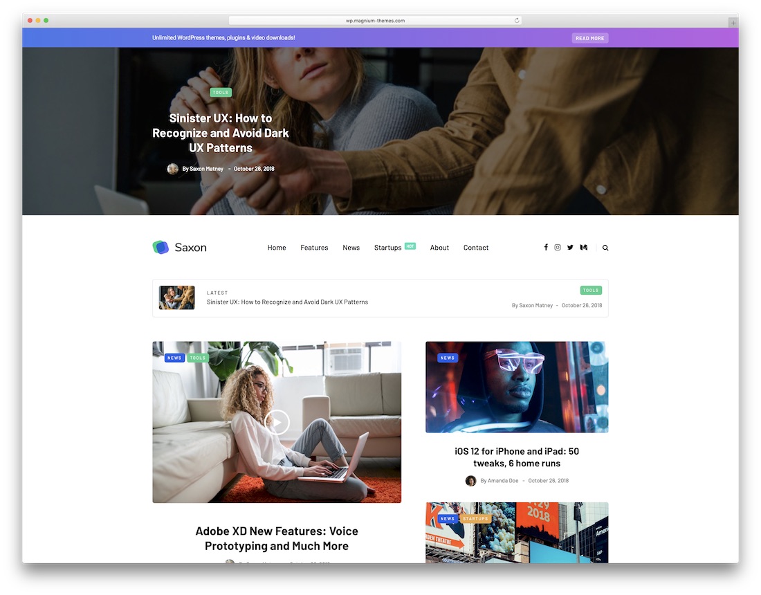 Untuk membuat halaman berita teknologi modern dan berkinerja tinggi, Saxon siap melayani Anda dengan semua fasilitasnya yang Anda buka setelah mengunduhnya. Saxon juga mendukung Google AMP, Gutenberg, dan barang berharga dan praktis lainnya yang akan menempatkan Anda di atas. Gabungkan dengan konten Anda yang menarik dan mulailah membangun pengikut yang setia.