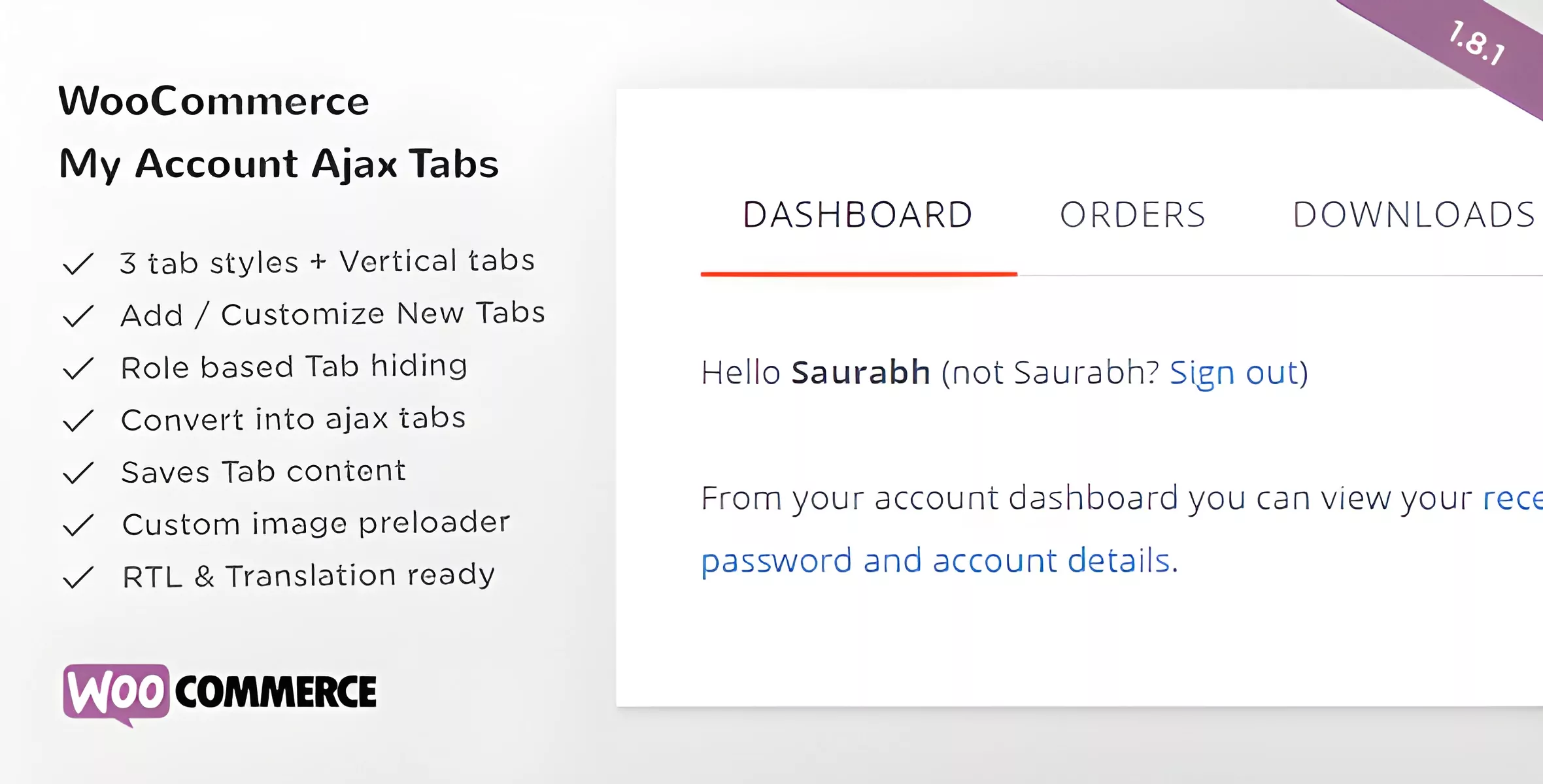 SS WooCommerce Myaccount Ajax Tabs adalah plugin lain yang dirancang khusus untuk menyesuaikan halaman Akun Saya di WooCommerce. Namun, fitur uniknya adalah membuat tab pada halaman Akun Saya AJAX diaktifkan. Ini sangat membantu dalam meningkatkan kecepatan dan waktu pemuatan.