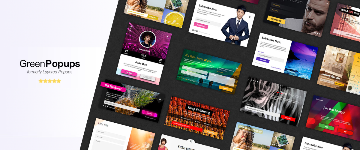 Green Popup adalah popup animasi multi-layer. Plugin popup WordPress ini menawarkan lebih dari 150 template dan berbagai opsi tampilan, yang semuanya dijamin akan menarik perhatian pengunjung.