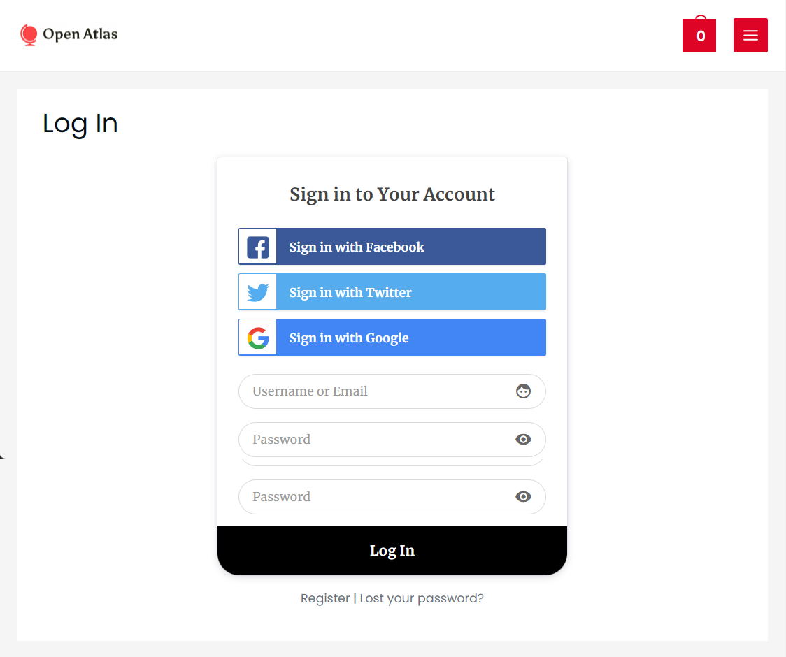 Jika Anda mengganti formulir pendaftaran dan login default di halaman Akun Saya dengan formulir kustom dari ProfilePress, berikut tampilannya di situs Anda.