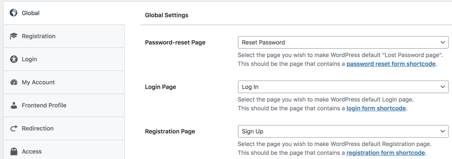 Jika mau, Anda dapat menggunakan formulir ini sebagai halaman pendaftaran default untuk situs web Anda. Yang perlu Anda lakukan adalah, buka ProfilePress > Settings > General > Global . Kemudian dari opsi Halaman Registrasi , pilih halaman registrasi kustom baru .