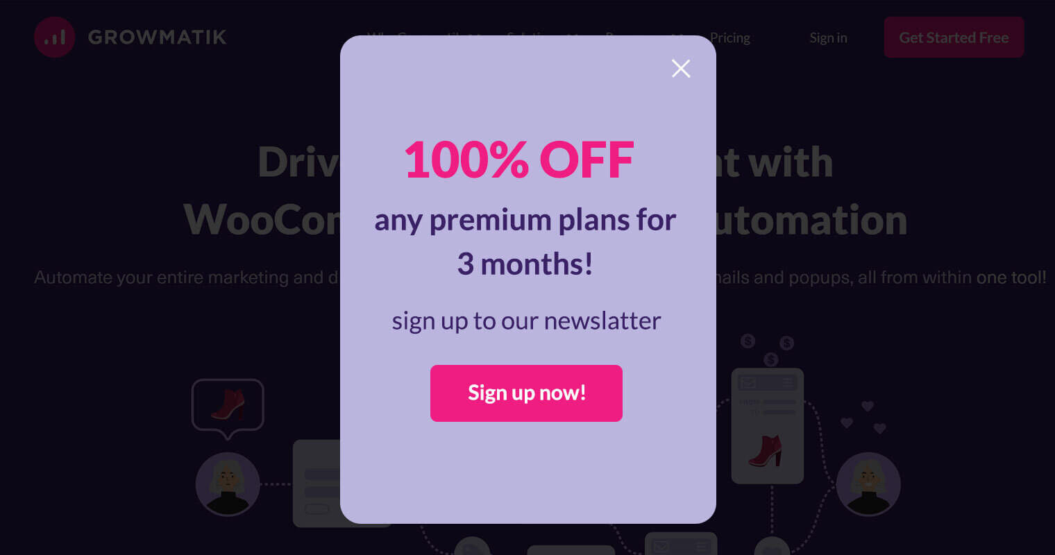 Popup Growmatik dapat diotomatisasi sesuai dengan berbagai kondisi hanya dalam beberapa klik. Akhirnya, analisis dan data kinerja popup apa pun tersedia yang memungkinkan Anda untuk memperbaiki dan menyesuaikan popup Anda sesuai dengan performa terbaiknya.
