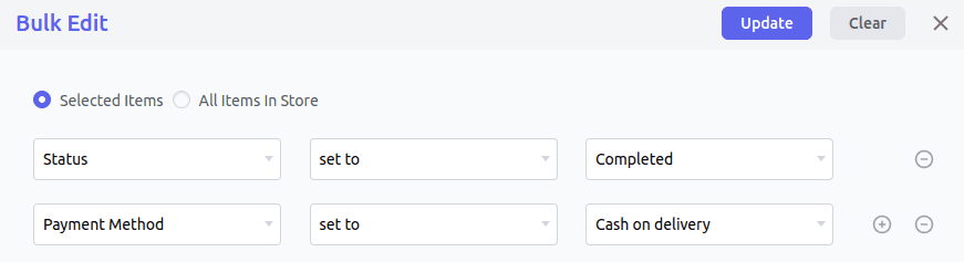 Baik itu mengubah status pesanan, detail pengiriman, metode pembayaran, total pesanan, Anda dapat memperbaruinya dalam hitungan detik. 100 atau 1000 atau 10.000+ pesanan, teknologi edit massal Smart Manager menangani semuanya.