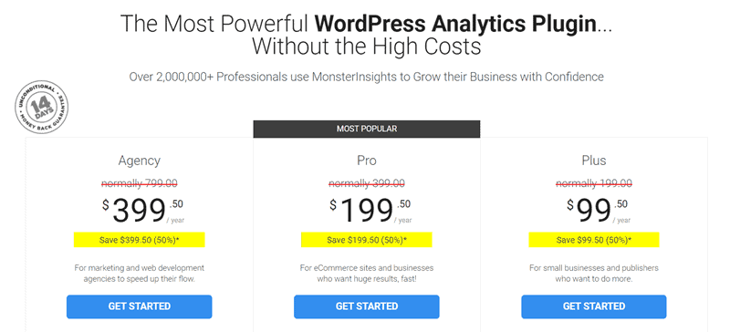 Il prezzo di Analytify parte da $ 39 per un sito, che è troppo economico rispetto ai suoi concorrenti MonsterInsights ed ExactMetrics.