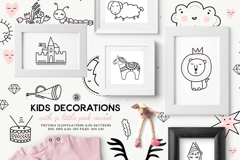 Clipart fatto a mano ideale per decorazioni per la casa, tessuti, tessuti, inviti per feste, inviti, oggetti artigianali fatti a mano, scrapbooking, articoli di carta stampata, feste di compleanno, poster, biglietti di auguri, modelli di design. È disponibile in 2 EPS che includono elementi e modelli di campioni.