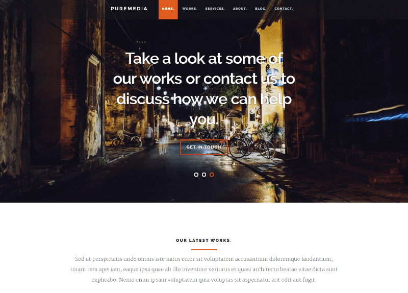 Puremedia è un modello pulito e moderno per i siti Web aziendali e di portfolio. Il design è completamente reattivo, compatibile con tutti i principali browser, predisposto per HDPI + Retina. Sembra sbalorditivo su qualsiasi dispositivo. Inoltre, il modello include anche un blog e layout di portfolio e un modulo di contatto ajax funzionante.