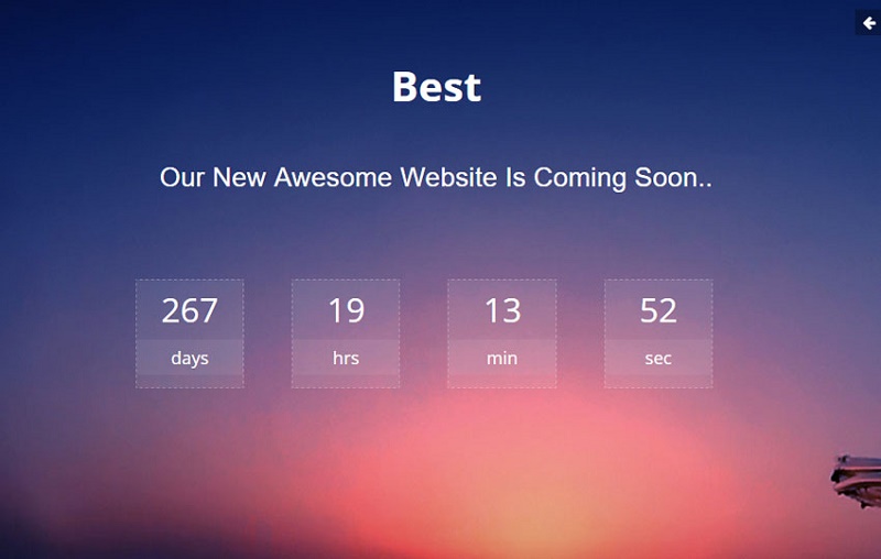 Best Coming Soon HTML Bootstrap Template è un modello html5 bootstrap flat clean in arrivo/in costruzione. Il nostro modello in arrivo ha uno slider reattivo, un contatore jQuery, una sezione contatti e una navigazione. Questo modello si basa su un framework bootstrap HTML5 più recente con supporto per più browser e dispositivi.